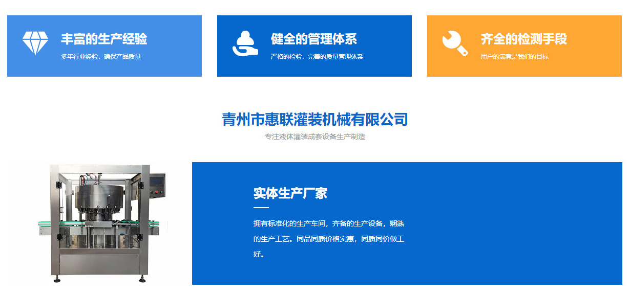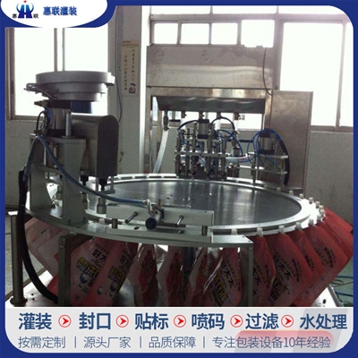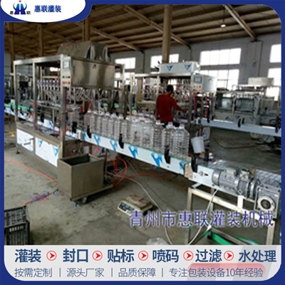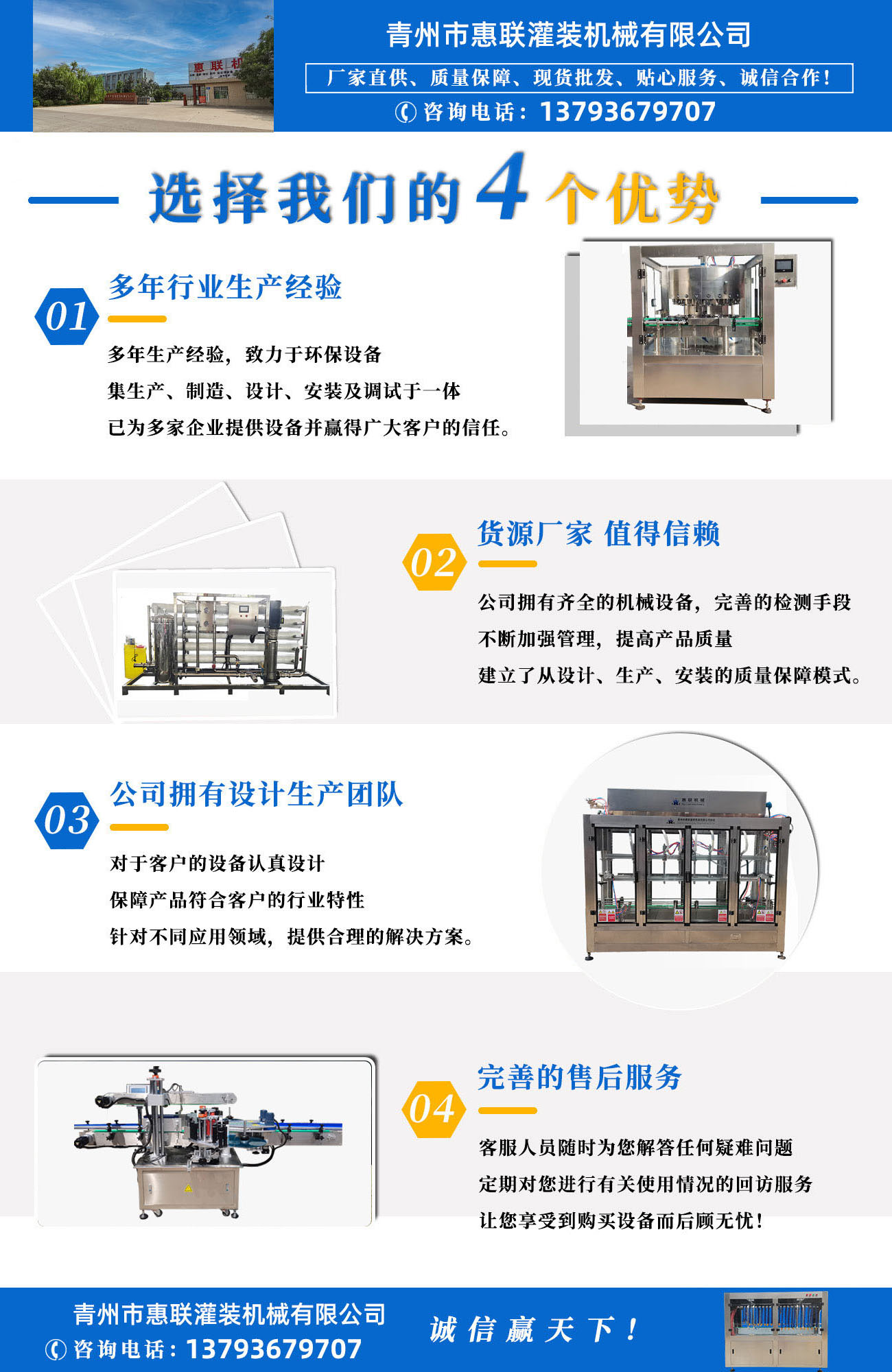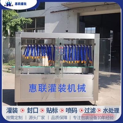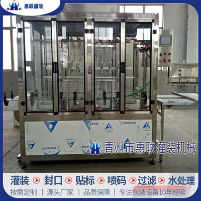 青州市惠聯(lián)灌裝機(jī)械有限公司是一家集生產(chǎn)研發(fā)、銷(xiāo)售、服務(wù)于一體的液體灌裝成套設(shè)備生產(chǎn)企業(yè),可根據(jù)廠家要求設(shè)計(jì)合理液體灌裝生產(chǎn)線,為用戶提供技術(shù)咨詢(xún)、設(shè)計(jì)工藝、場(chǎng)區(qū)平面布置、工藝改造、設(shè)備安裝調(diào)試等完善服務(wù)。 公司生產(chǎn)制造各種類(lèi)型液體灌裝機(jī)、過(guò)濾機(jī),水處理設(shè)備及液體灌裝成套設(shè)備。主要產(chǎn)品有:白酒、葡萄酒、黃酒等酒水灌裝機(jī)、食用油、機(jī)油、潤(rùn)滑油等油類(lèi)灌裝機(jī)、醬油醋、老抽、生抽等調(diào)味品灌裝機(jī)、防凍液、玻璃水灌裝機(jī)、酒精、84消毒液灌裝機(jī)、車(chē)用尿素灌裝機(jī)、口服液灌裝機(jī)、洗滌劑灌裝機(jī)等多種液體、膏體灌裝設(shè)備,全自動(dòng)/半自動(dòng)灌裝機(jī)型號(hào)多,規(guī)格全,洗瓶機(jī)、瓶子封口機(jī)、打塞機(jī)、熱縮機(jī)、瓶子烘干機(jī)、貼標(biāo)機(jī)、噴碼機(jī)、輸送線、裝箱機(jī)、水處理設(shè)備等全套生產(chǎn)線相關(guān)配套設(shè)備齊全,自產(chǎn)自銷(xiāo),一站式購(gòu)齊,售后無(wú)憂。